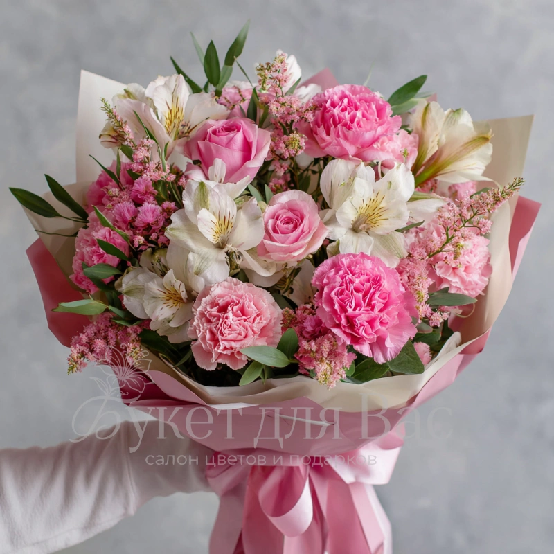 Букет с гвоздиками «Розовый каприз»