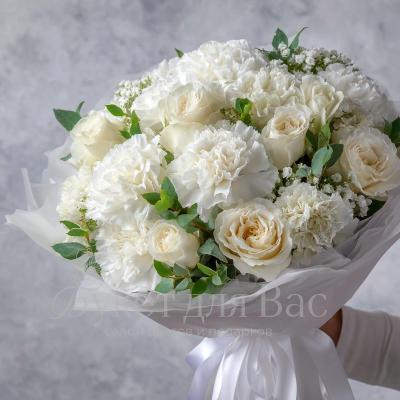Букет с гвоздиками «Белый вальс»