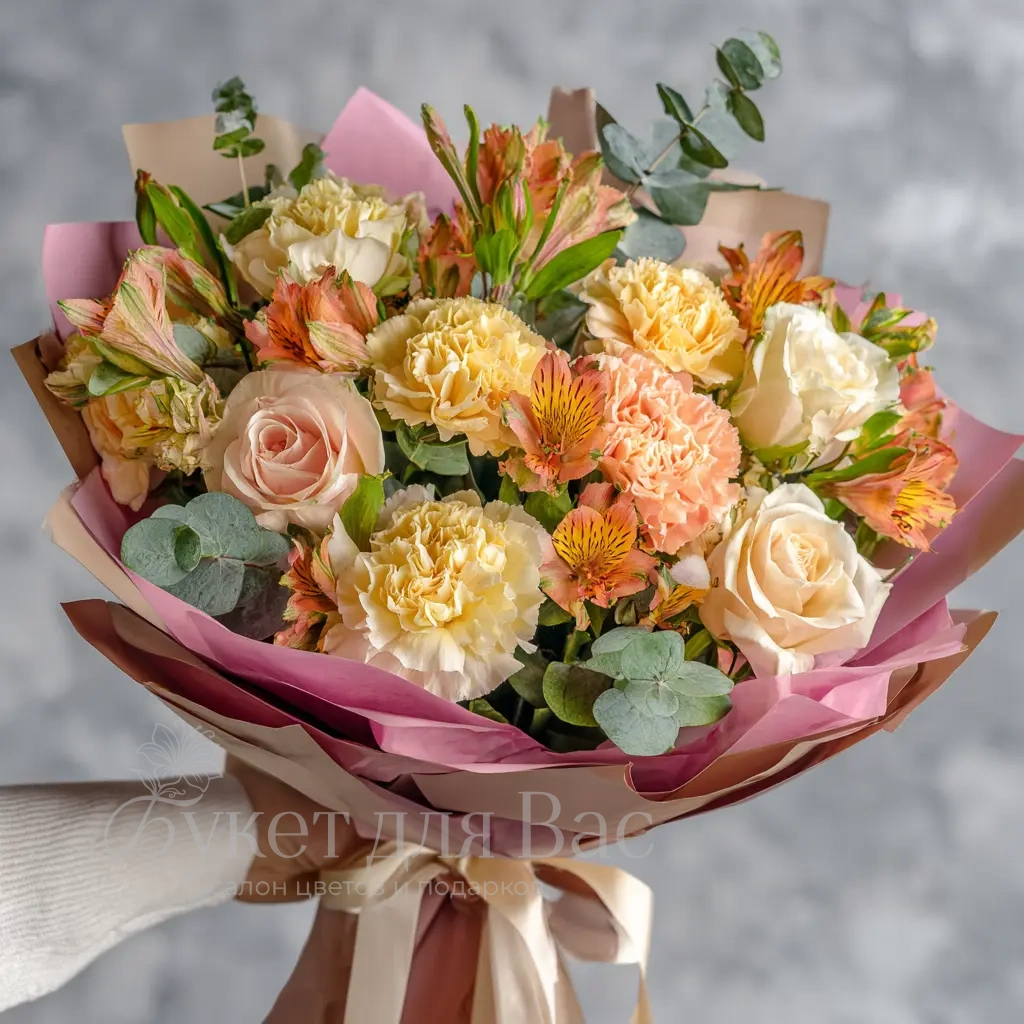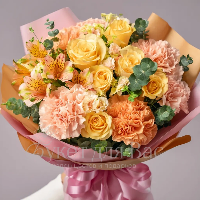 ГлавнаяКаталогБукетыГвоздикиБукет с гвоздиками «Солнечный закат»