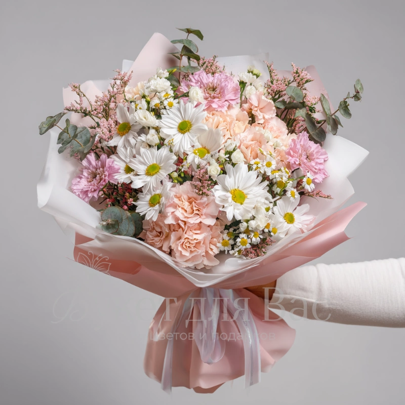 Букет с гвоздиками «Розовый каприз»