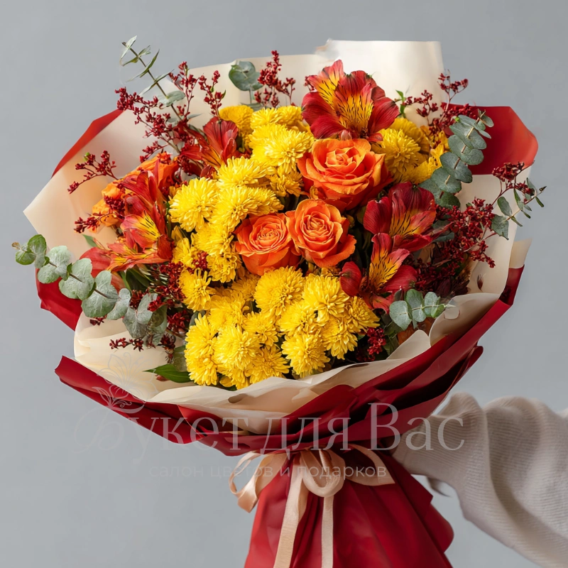 Букет с хризантемами «Огни сентября»