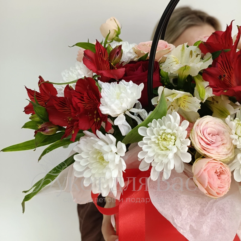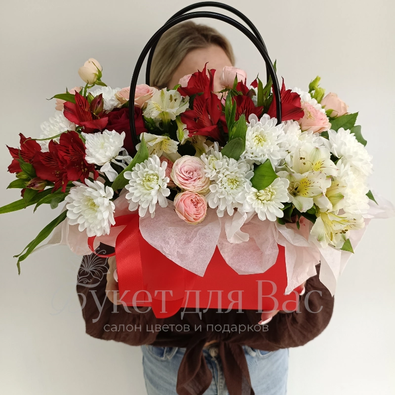 ГлавнаяКаталогСумочка с красно белой альстромерией