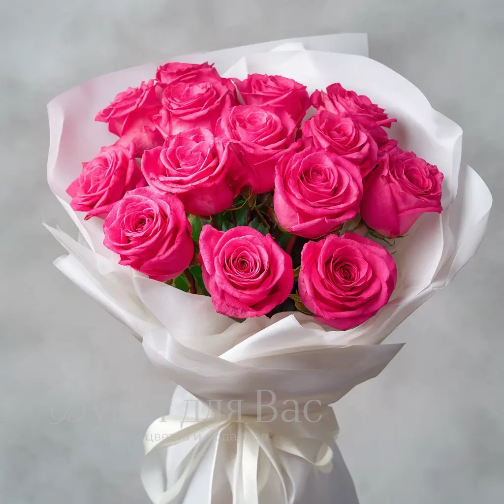 Нежный букет из 15 розовых роз средней длины — для тех, кто хочет выразить заботу, признательность или тёплые чувства. Универсальный цвет подойдёт как девушке, так и маме.