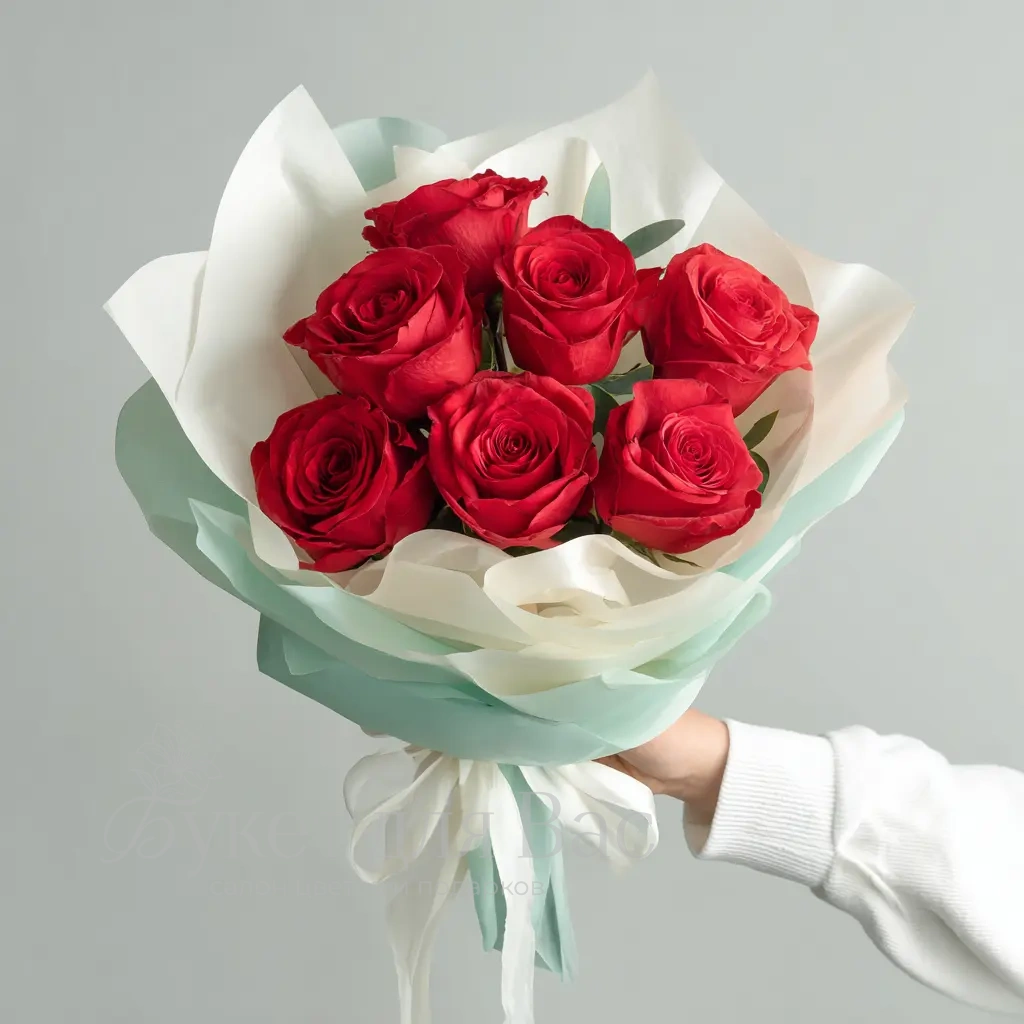 Букет с динамичным характером. Подходит для тех, кто любит впечатлять. Красные розы в воздушной упаковке — универсальное решение для праздника и признания.